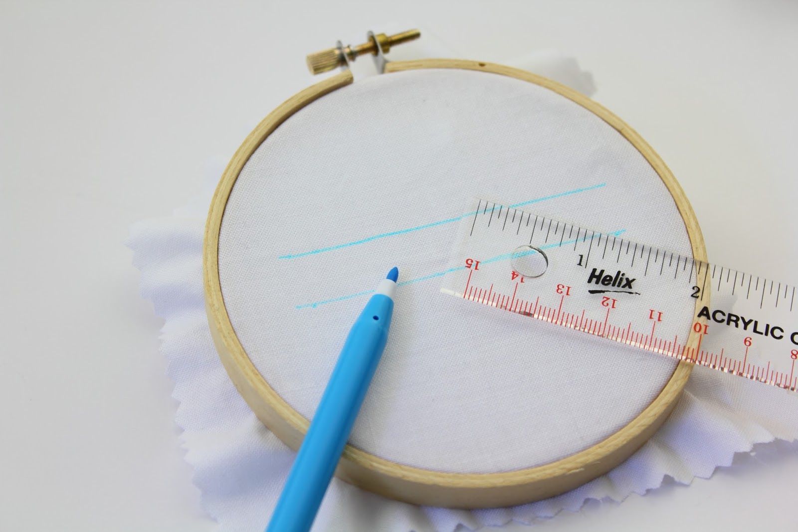 With my water-soluble marker, I drew two parallel lines - 1/2" apart: