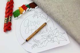 If you remember from my last post, I had just finished the embroidery on this Thanksgiving motif.