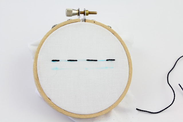 After pulling the thread all the way through, I slid the needle along the fabric and under the first stitch of the Running Stitch.